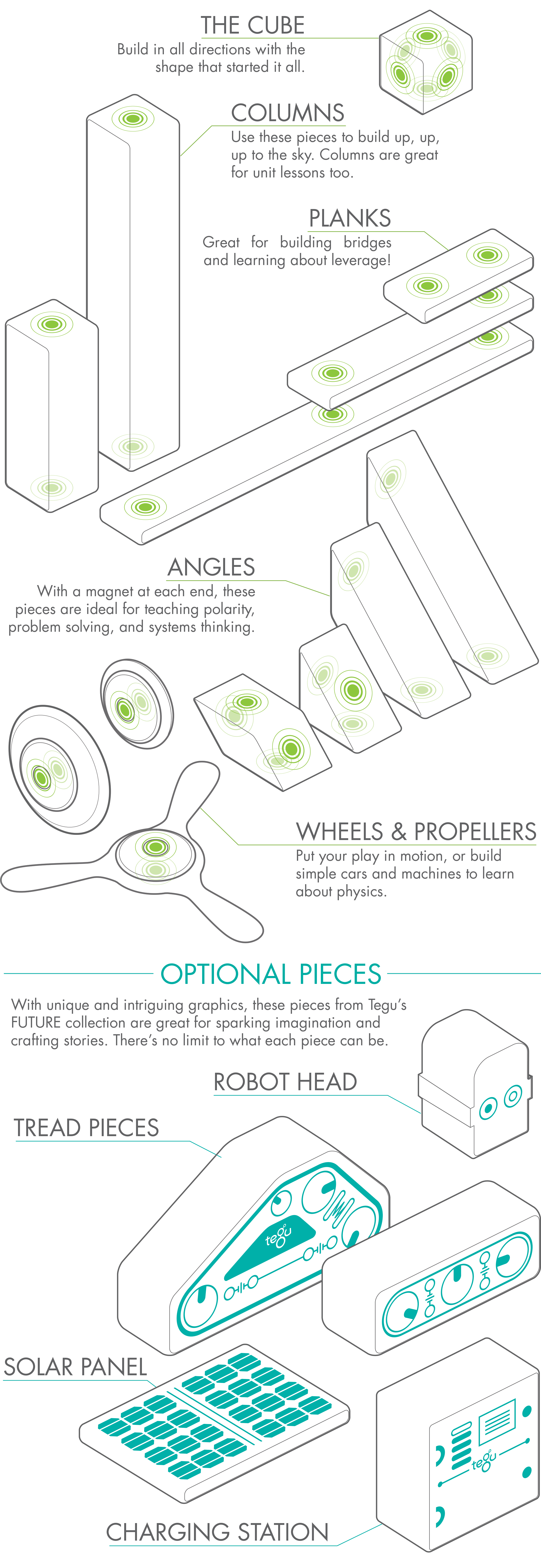Tegu Blocks bring open-ended imaginative play to the classroom with the feel of all-natural wood and the powerful wonder of magnets. Our Classroom Kit allows small groups of children to build big and learn unique lessons from science to math to art.