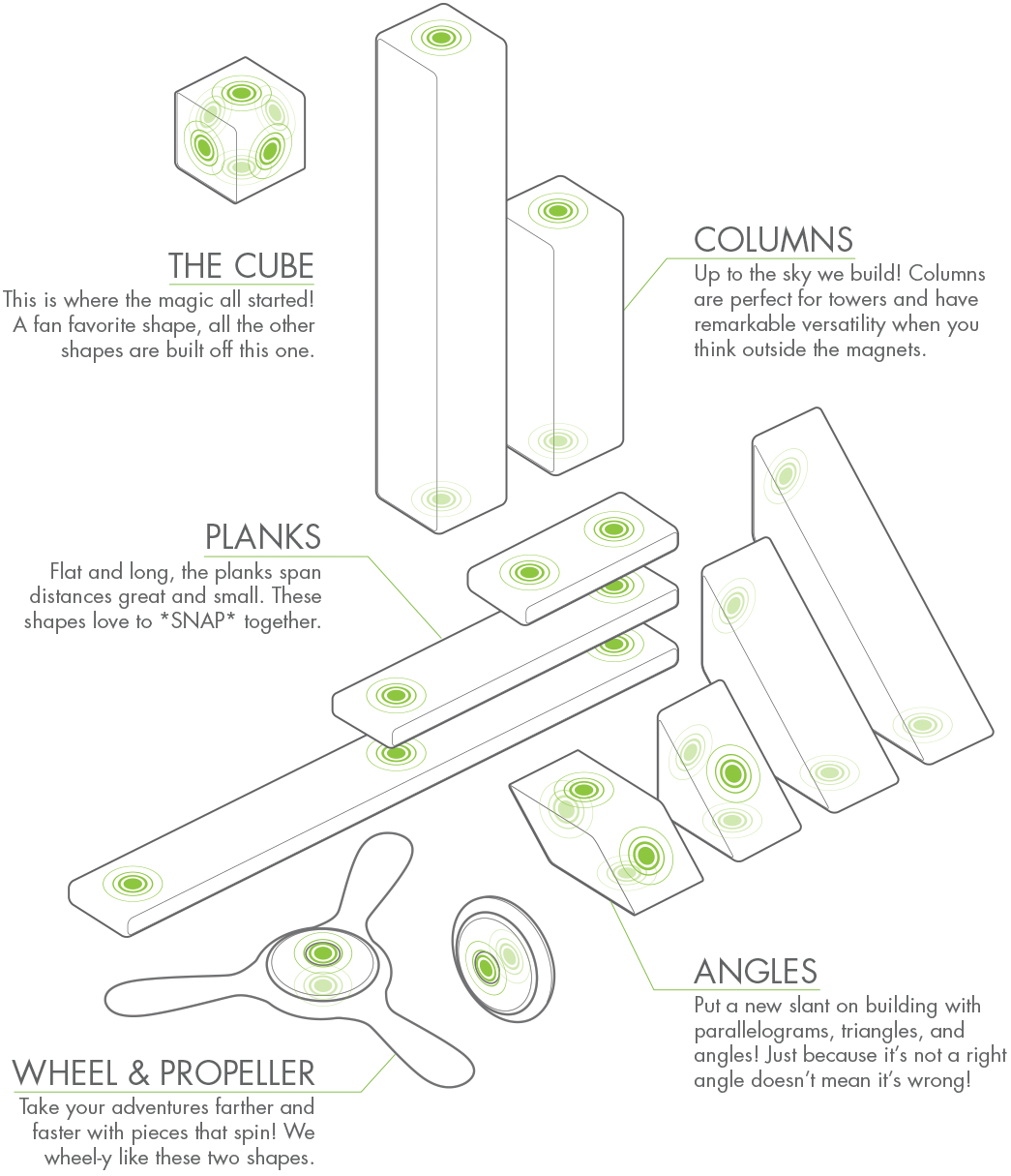 One thing most people don't realize is that all our blocks are designed to work together. This was a unique challenge that was solved by crafting each block around a core cubic module. (By the way, the cube was the first piece we made!)